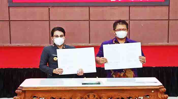 Wali Kota Singkawang, Tjhai Chui Mie bersama Ketua Pengadilan Negeri Singkawang, Hasanudin menunjukan nota kesepakatan yang telah ditandatangani oleh keduanya. Jumat 3 September 2021. TRIBUNPONTIANAK/ISTIMEWA
