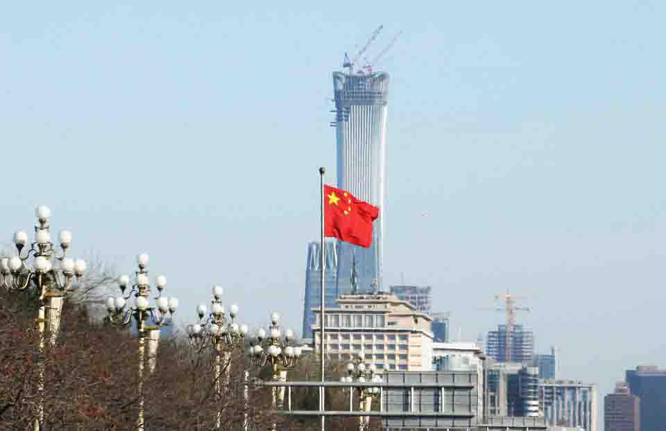 Bendera Tiongkok berkibar di Gerbang Xinhuamen kompleks kepemimpinan Zhongnanhai di pusat Beijing, Tiongkok 15 Desember 2017. REUTERS/Jason Lee