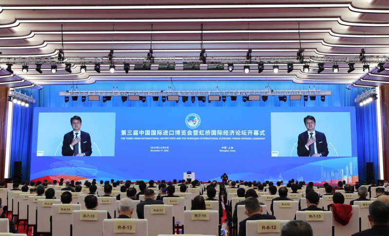 Direktur Jenderal Organisasi Kekayaan Intelektual Dunia (WIPO) Daren Tang menyampaikan pidato melalui tautan video pada upacara pembukaan Pameran Impor Internasional China (China International Import Expo/CIIE) ketiga yang diadakan di Shanghai, China timur, pada 4 November 2020. (Xinhua/Fang Zhe)