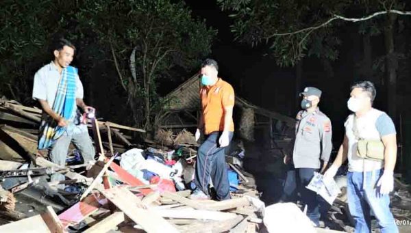 “Pasca-mendengar suara ledakan masyarakat sekitar mendatangi tempat kejadian yang berasal dari rumah Ulung dan ditemukan adanya jenazah serta satu orang luka berat yang merupakan istri dari Ulung ditemukan oleh warga. Yang bersangkutan sedang berusaha untuk keluar menyelamatkan diri dari runtuhan puing rumah yang sudah hancur,” tutup Shinto Silitonga.