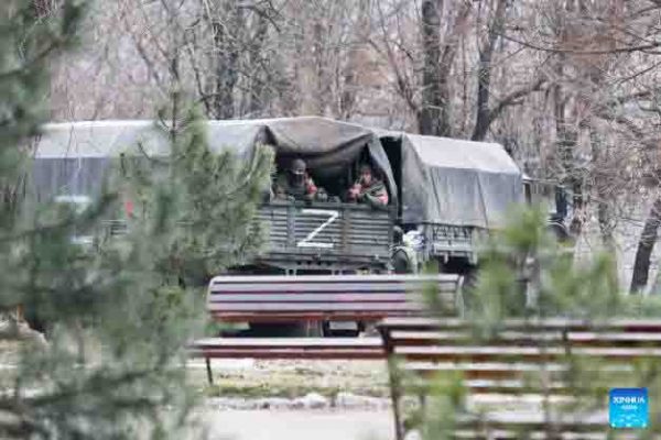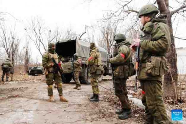 Foto yang diambil pada 1 Maret 2022 menunjukkan personel bersenjata di Donetsk. (Foto oleh Victor/Xinhua)
