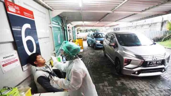 Foto: Antrean kendaraan warga saat tes usap PCR/Antigen di GSI Lab (Genomik Solidaritas Indonesia Laboratorium), Cilandak, Jumat (4/2/2022). (CNBC Indonesia/Andrean Kristianto)