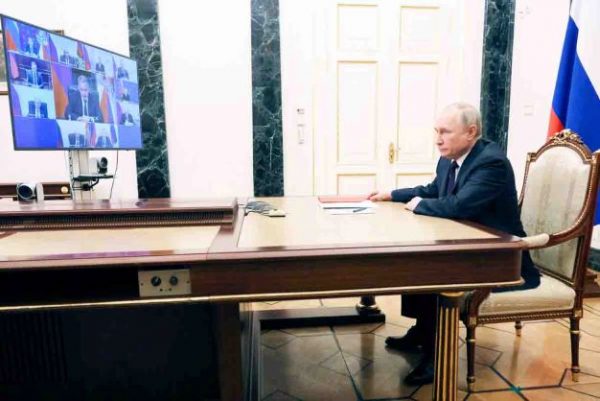 Presiden Rusia Vladimir Putin memimpin pertemuan dengan anggota Dewan Keamanan melalui tautan video di Kremlin di Moskow, Rusia, 11 Maret 2022. [Foto/Agen]