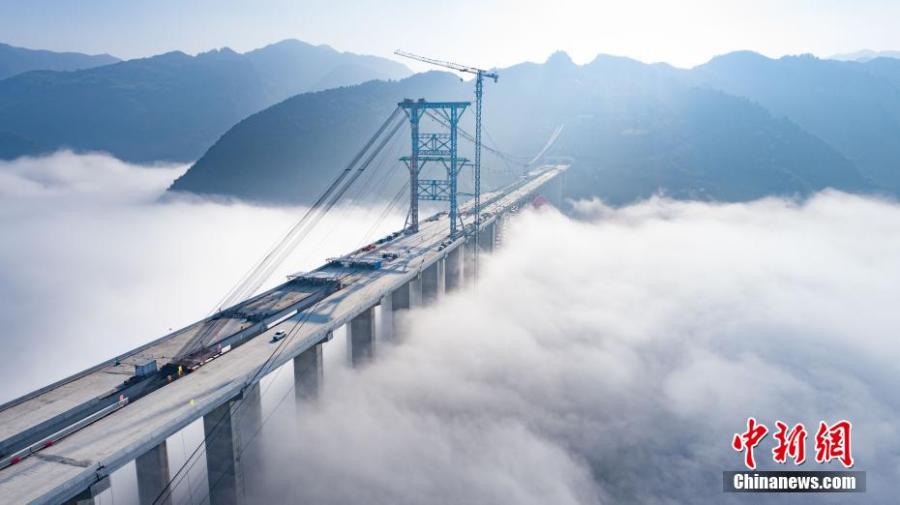 Pemandangan spektakuler jembatan besar Dafaqu di atas awan(1/5)