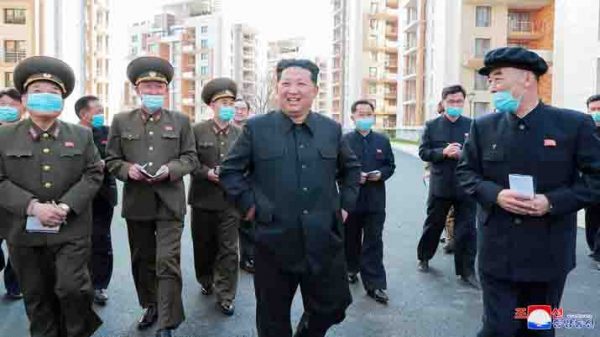 Foto: Pemimpin Korea Utara Kim Jong Un memeriksa Distrik Perumahan Terasering Tepi Sungai Pothong dalam foto tak bertanggal yang dirilis pada Minggu (3/4/2022) dirilis oleh Kantor Berita Pusat Korea (KCNA) Korea Utara. (via REUTERS/KCNA)