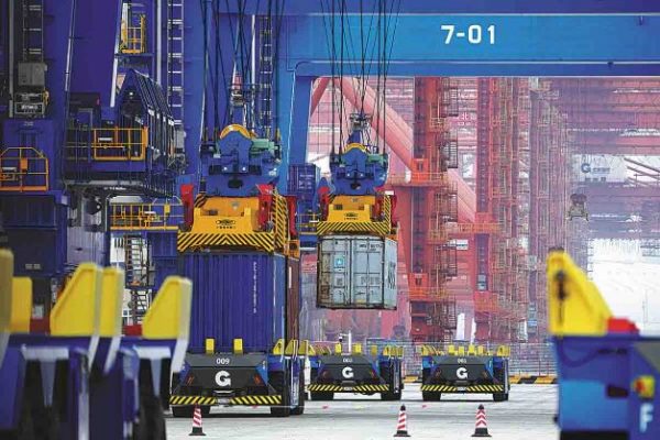 Kargo ditangani di Pelabuhan Qinzhou, wilayah otonomi Guangxi Zhuang. [Foto/Xinhua]