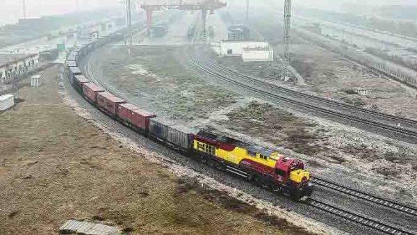 Kereta barang berangkat dari Stasiun Pelabuhan Qinzhou. [Foto/Xinhua]