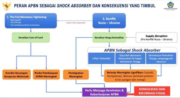 “Munculnya risiko terutama dari sisi kenaikan inflasi karena harga-harga energi dan pangan yang akan menyebabkan pengetatan dari moneter,” ujar Sri Mulyani saat rapat kerja dengan Komisi XI DPR, Rabu (8/6/2022)
