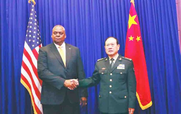 Penasihat Negara China dan Menteri Pertahanan Jenderal Wei Fenghe (kanan) bertemu dengan Menteri Pertahanan AS Lloyd Austin di Kamboja pada Selasa pagi. LI XIAOWEI/UNTUK CHINA SETIAP HARIAmerika Serikat harus menghormati kepentingan inti China dengan pertanyaan Taiwan pada intinya, Anggota Dewan Negara dan Menteri Pertahanan Jenderal Wei Fenghe mengatakan kepada timpalannya dari AS Lloyd Austin dalam pertemuan mereka di Kamboja pada hari Selasa.