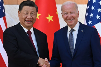 Presiden Cina Xi Jinping dan Presiden Amerika Serikat Joe Biden bertemu sehari sebelum kTT G20 di Bali, Senin (14/11) © Disediakan oleh Katadata
